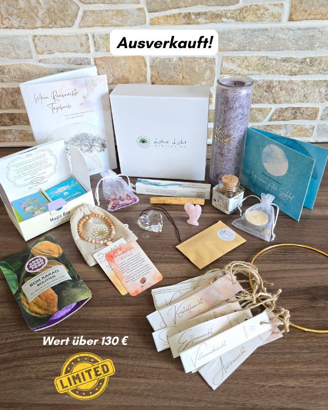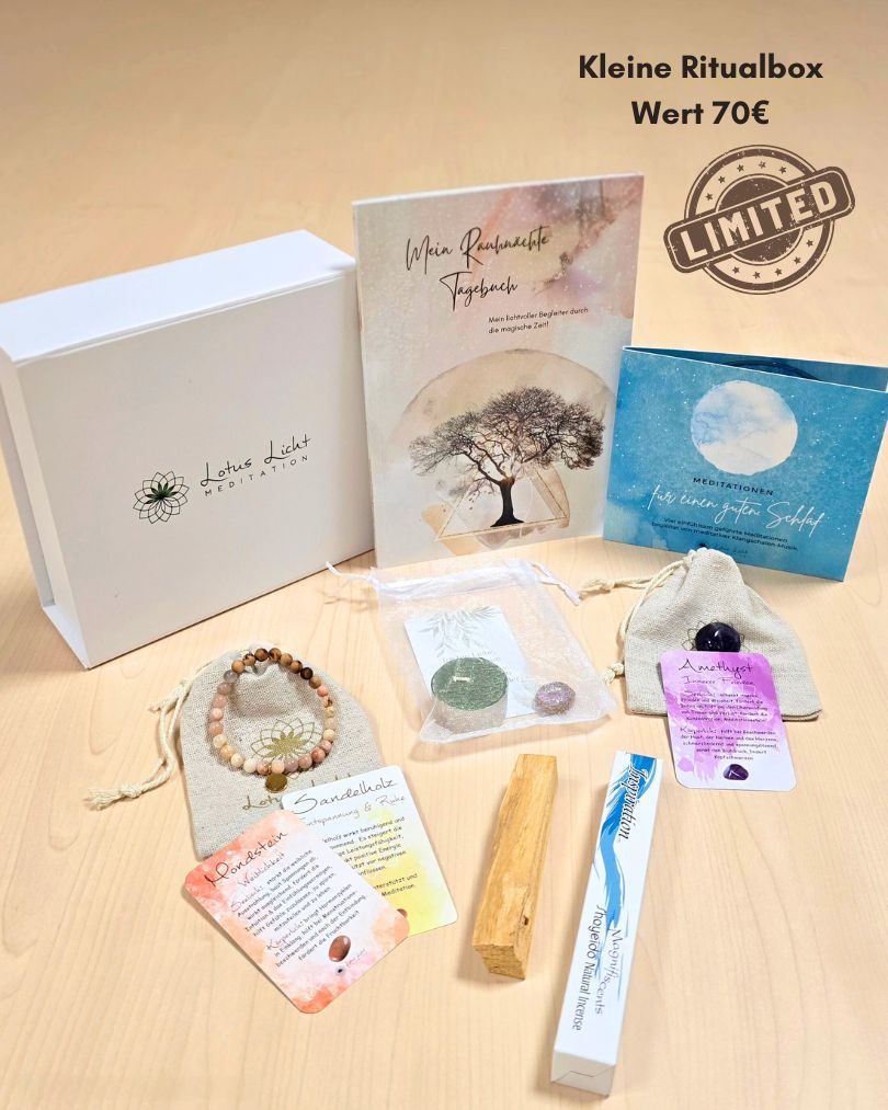 Als liebevolle Alternative zu unserer ausverkauften großen Ritualbox haben wir ein kleineres Ritual-Set für dich kreiert. Die Stückzahl ist sehr limitiert – sichere dir jetzt dein Set, solange es verfügbar ist.